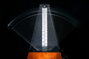 どうすればテンポキープを身につけられるのでしょうか。やるべきことは大きく分けて2つあります。1つは正確なテンポを知ることです。正確なテンポとはフレーズの速さではなく、フレーズの裏に感じる一定のビート、カウントのことです。音源に合わせるだけでなく、メトロノームを活用すると良いでしょう(参考『メトロノーム・トレーニング』)。ただ、メトロノームに合わせるだけでなく、メトロノームに合わせて足をタップしながら演奏できるようになりましょう。